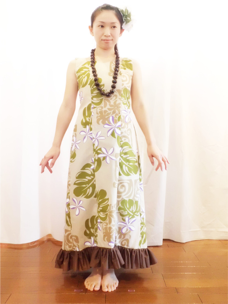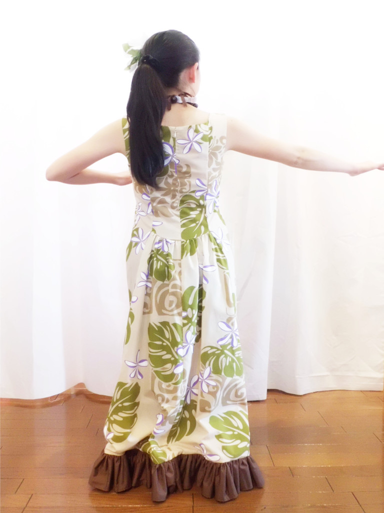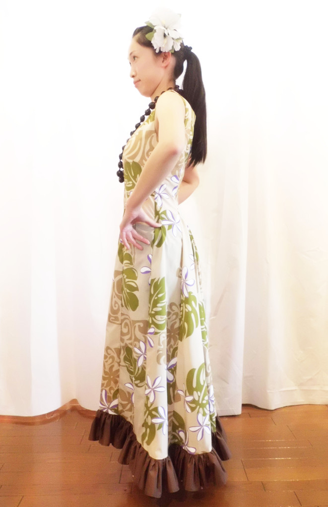 上半身はプリンセスラインでフィットさせ、スカート部分はゆったりとしたフレアになっています。