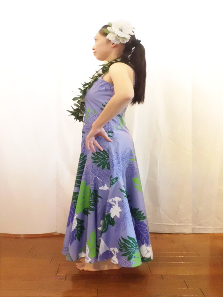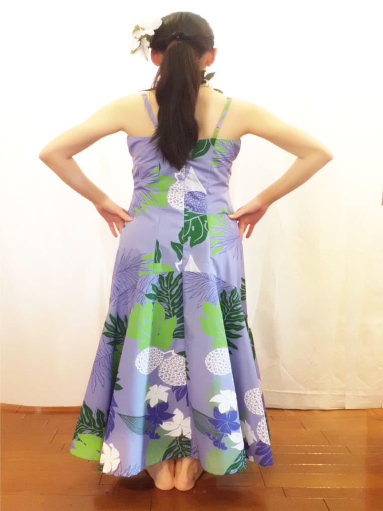 ドレスのシルエットはマーメイドライン風。ヒップの下までボディーラインに沿って裾でぱっと広がるフレアがとても上品なドレスです。フレア部分は三角マチ入りなのでボリュームあるフレア。上半身のプリンセスライン切替ですっきりとさせています。