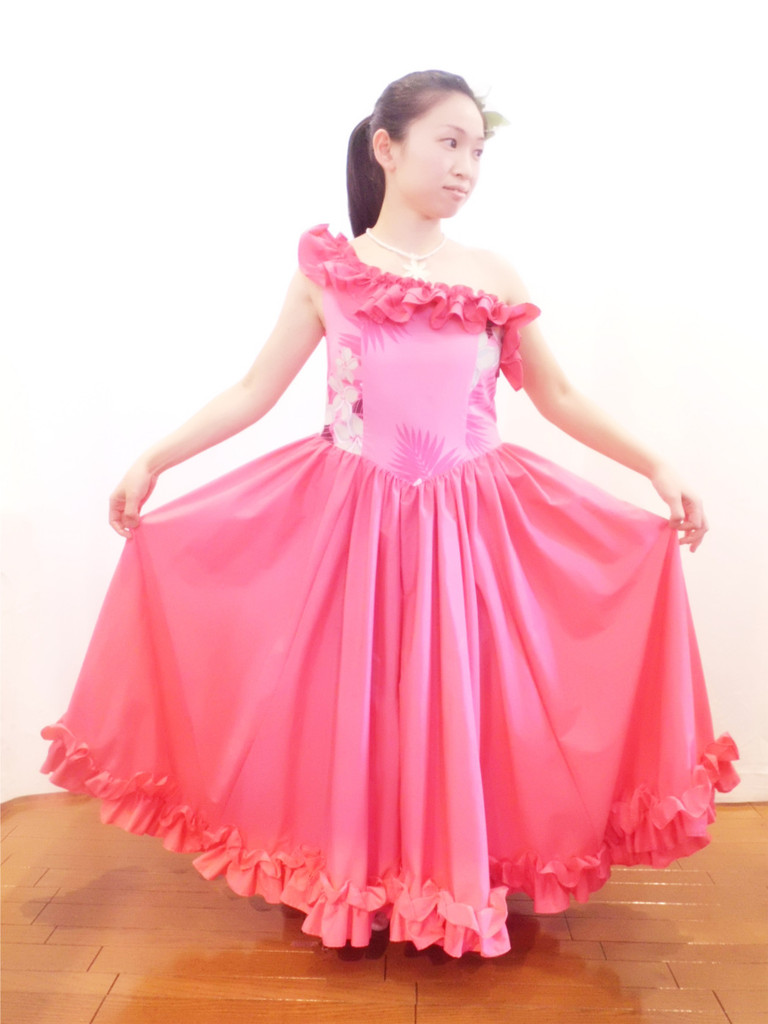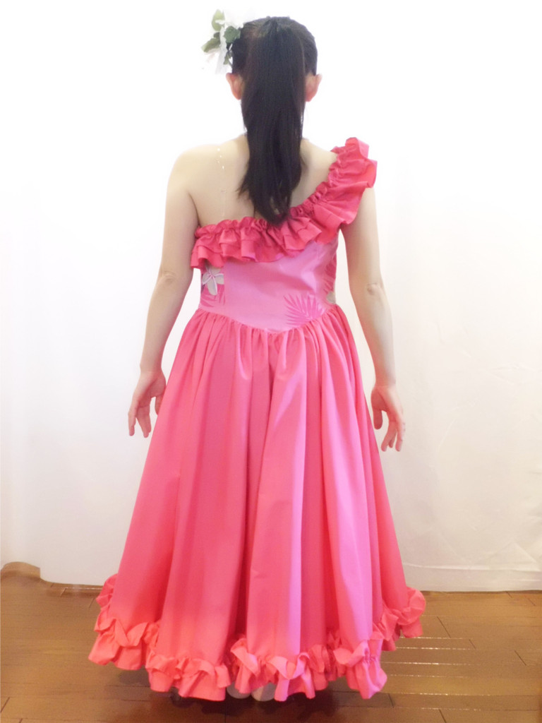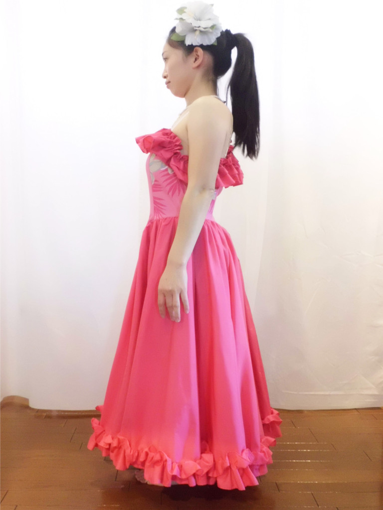 サンプルドレスはピンクのみを使用してますがフリルの色を変えたり無地ではなく柄の生地を使っても印象はガラッと変わるドレスです。